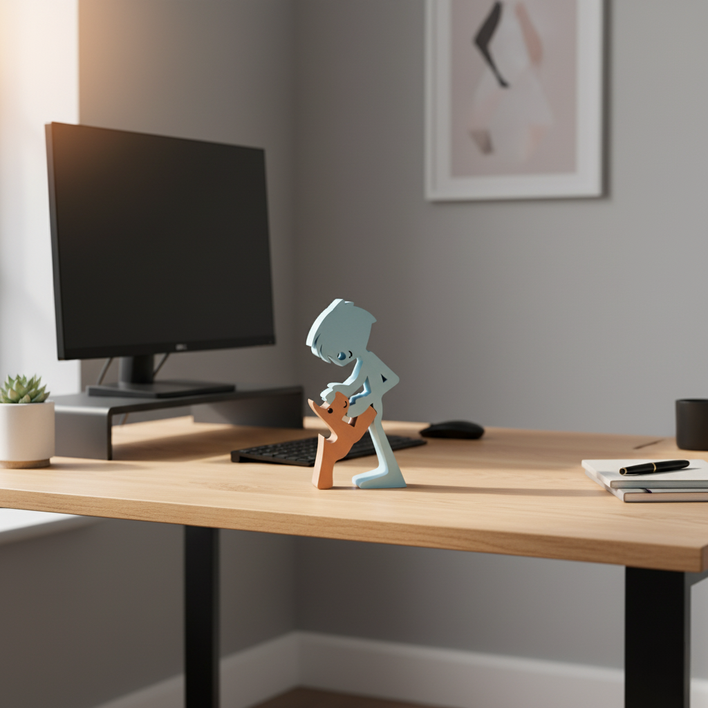 This sculpture is more than just a decorative piece; it is a tribute to the beauty of everyday moments and the special bond that exists between humans and their furry friends. Whether placed in a child’s room, a family space, or even as a thoughtful gift for a dog lover, this artwork serves as a reminder of the loyalty, trust, and joy that animals bring into our lives.