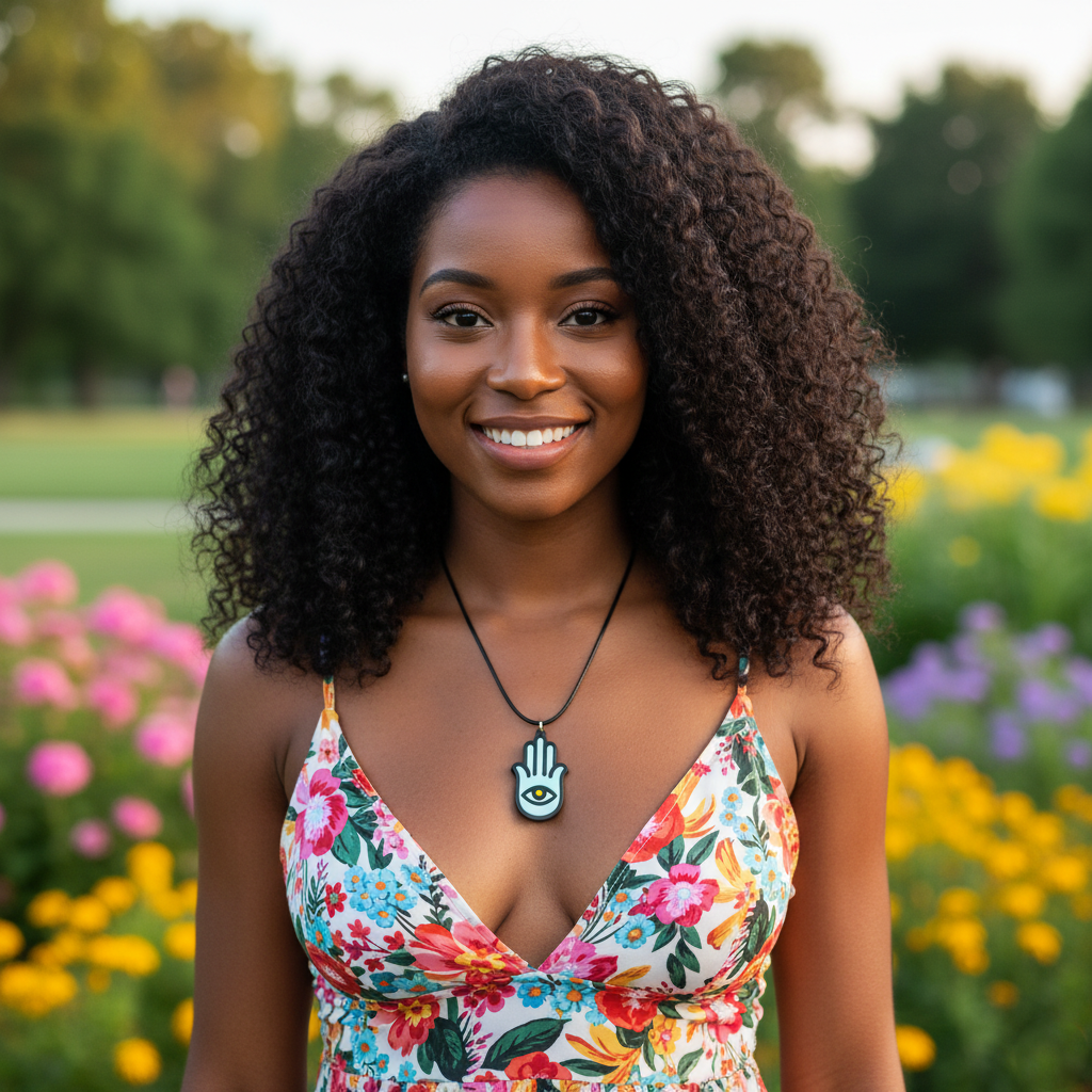 Elevate your style with this unique Hamsa Hand pendant. Featuring a minimalist design, this good luck charm brings positive energy and wards off negativity. Comes with an adjustable cord for a comfortable fit.