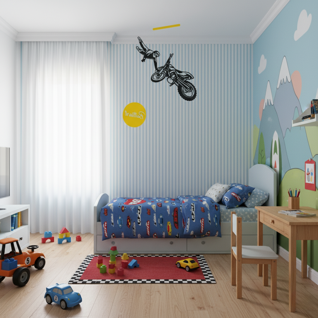 This hanging Mobile is a unique and dynamic creation by artist Carlos Battistelli, designed to capture the essence of motocross and the spirit of extreme adventure. This exclusive hanging mobile features a motorcyclist soaring through the air, reaching for his bike, evoking the thrill of daring jumps and stunts.