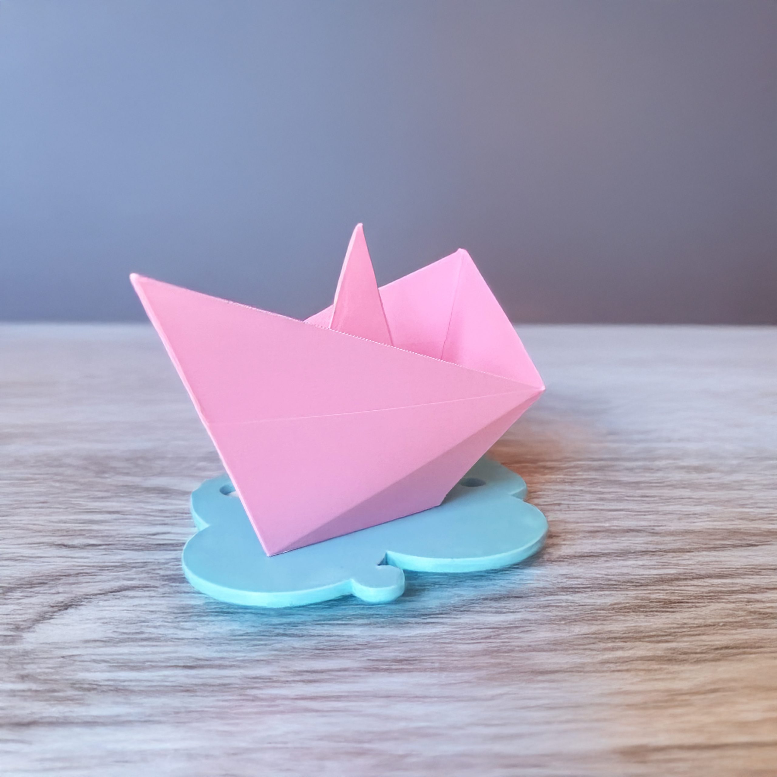Imagina la ternura y la nostalgia de un barco de papel que nunca se moja ni se hunde. Esta pequeña escultura impresa en 3D celebra la simpleza de los juegos de infancia y la magia de los sueños que navegan en aguas tranquilas.