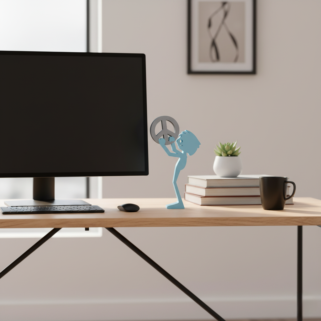 In a world often marked by conflict, this 3D-printed sculpture symbolizes the vital importance of peace. By holding the peace icon, the figure reminds us that preserving harmony is essential to creating a better life for all. When we prioritize peace, we nurture a world where differences are resolved without violence, where understanding prevails over hatred. This piece serves as a gentle yet powerful reminder that each of us plays a role in avoiding war and fostering a future where everyone can thrive. Display this sculpture as a testament to the enduring human desire for peace, or gift it to someone who shares the same hope for a better, more peaceful world.