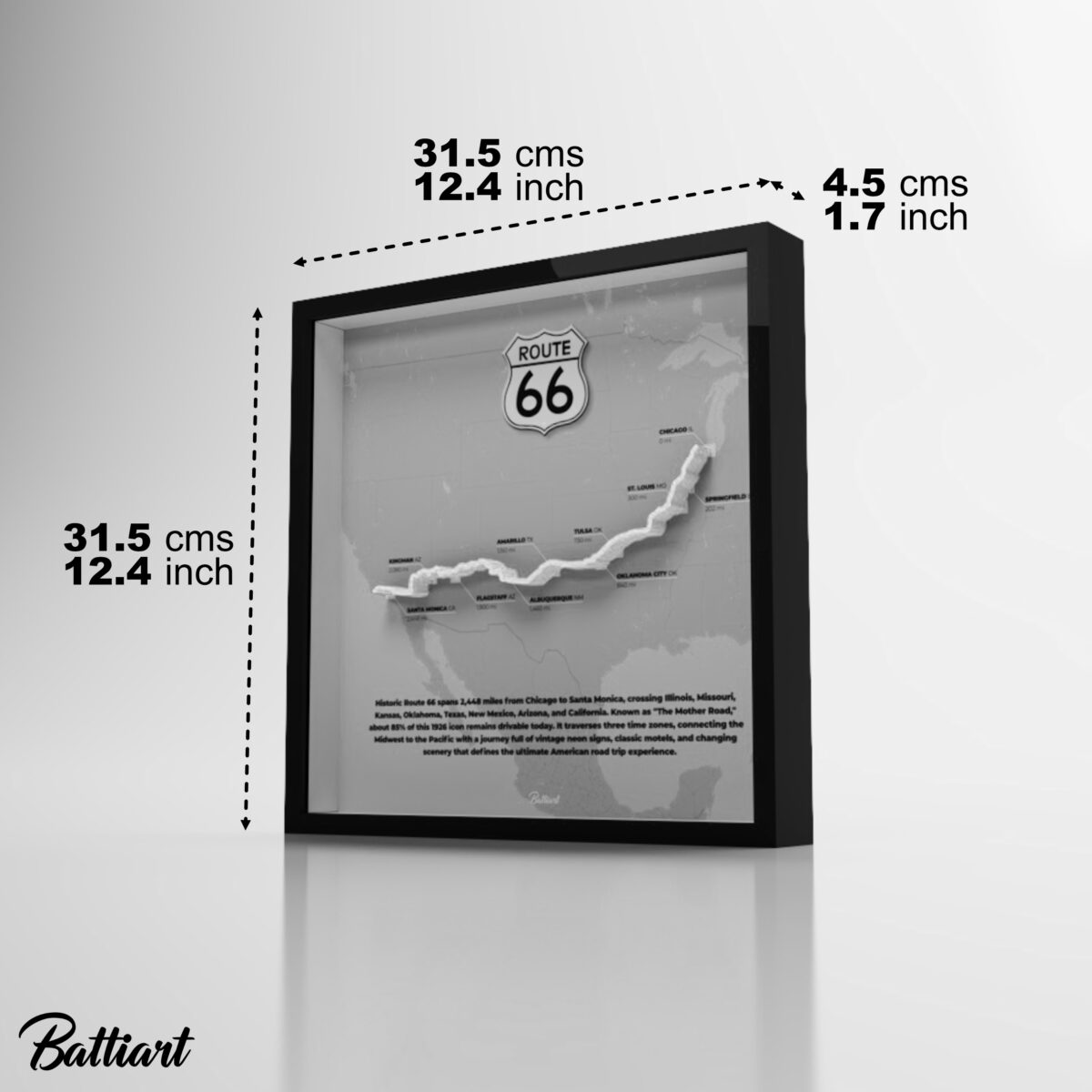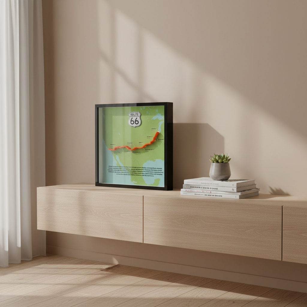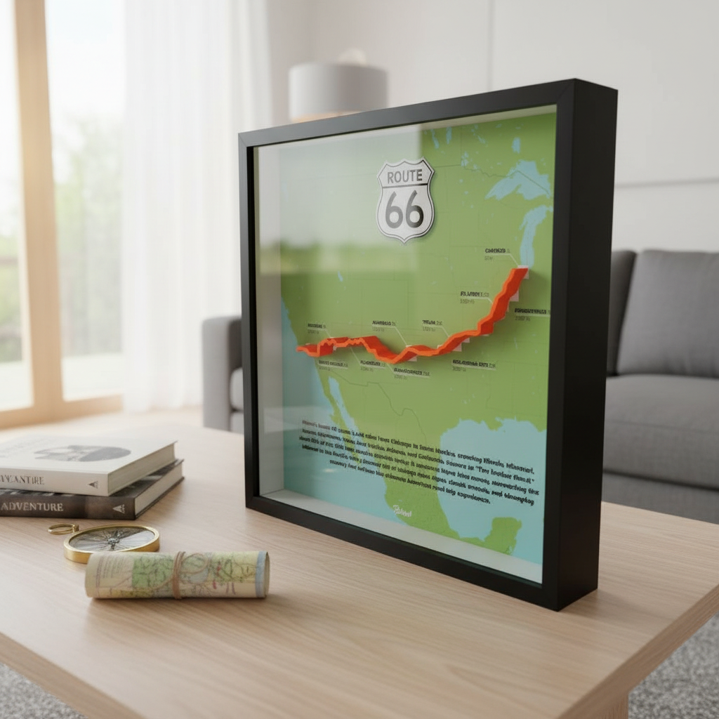 Capture the timeless spirit of the “Mother Road” with this exquisite Route 66 shadow box. More than just decor, this 31.5 x 31.5 x 4.5 cm piece acts as a window to the American horizon. It features a recyclable plastic frame with a realistic wood-grain finish and a safe, shatter-resistant front panel.