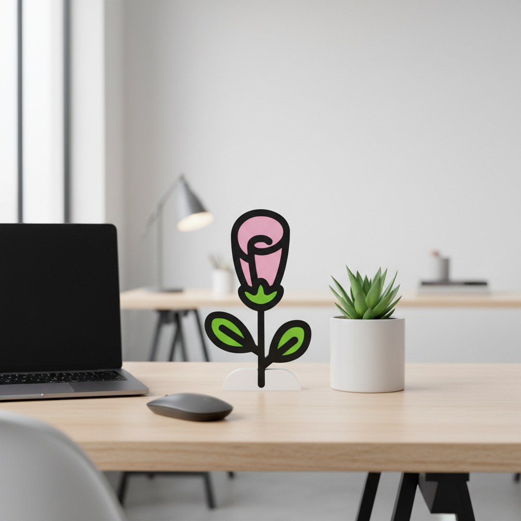 Discover serenity and elegance with this 3D printed tulip sculpture in pink, green, and black. Perfect for adding a touch of love and calm to any office or home, this minimalist piece beautifully embodies tranquility and modern charm.