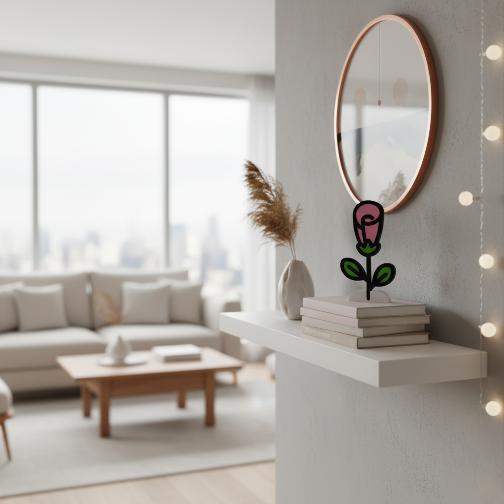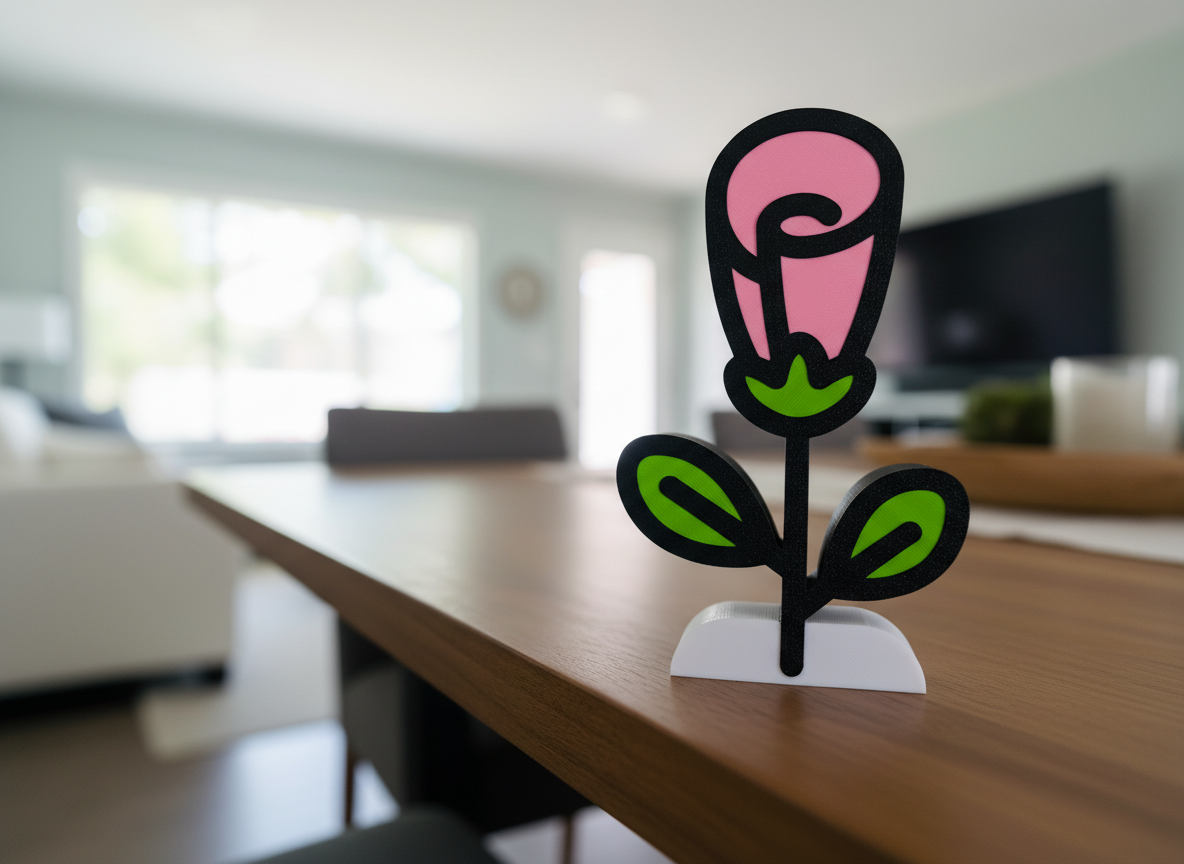 Descubra la serenidad y la elegancia con esta escultura de tulipán impresa en 3D en rosa, verde y negro. Perfecta para añadir un toque de amor y calma a cualquier oficina u hogar, esta pieza minimalista encarna maravillosamente la tranquilidad y el encanto moderno.